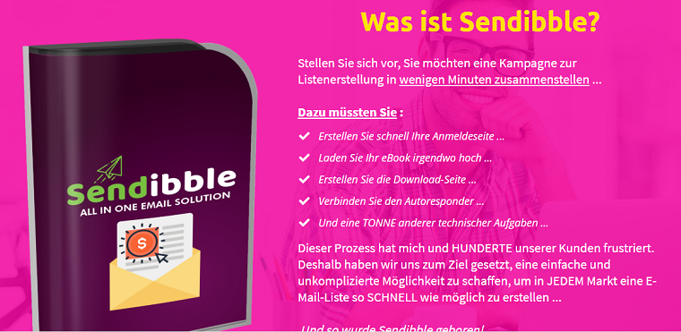 Sendibble erstellt Ihre Zielseiten, lädt Seiten herunter, hostet Ihre E-Books, erstellt Ihre Liste und ist Ihr E-Mail-Autoresponder ALL IN ONE Solution! Erstellen Sie eine E-Mail-Liste in nur 3 einfachen Schritten…